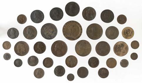 516* Conder tokens. A collection of 18/19th century trading tokens, including Middlesex, Christ’s Hospital [School] sixpence, 1800; Peter Kempson, Copper Halfpenny, 1794; Frederick Duke of York Halfpenny, 1794; Middlesex For General Convienience 1795; Manchester Halfpenny 1793; John Wilkinson Iron Master Halfpenny, 1791; Tunstead & Happing, 1812; Wivelscombe 1811 token, Liverpool Halfpenny, 1791, Coventry Halpenny, 1792; GloucestershireBrimscombe Port, Thames and Severn Canal Halfpenny, 1795 plus an American Ten Cent coin, counter struck, ‘United with Ireland’, the reverse struck with the date 1852 and other tokens, variable condition (25)