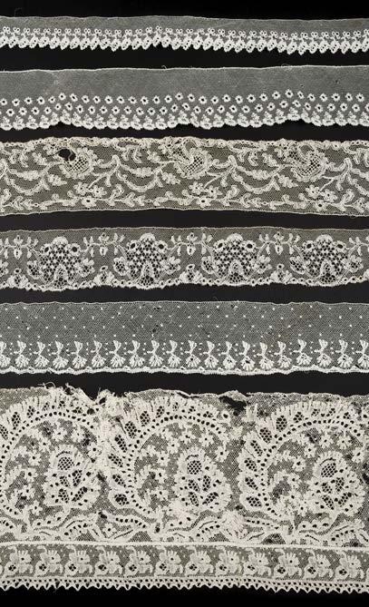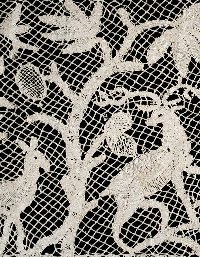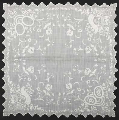 The use of slips on this attractive 18th century apron is unusual; we have not seen another, the embroidery usually being stitched direct to the ground.