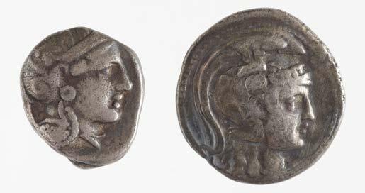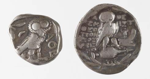 Tetradrachm, Obverse depicting, Head of Athena (goddess of wisdom) right, wearing earring, necklace and crested Attic helme, Reverse depicting Owl standing right, head facing, closed tail feathers, 15.9 together with one other Athenian owl Silver tetradrachm coin, 16.7g (2)