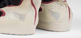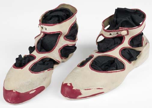 270* Clothing. A rare pair of Phillips’ Silver Wing bathing shoes, England, early 1920s, moulded in cream rubber, with red painted edgings (rubbed in places), and silver wings to back of each shoe, break to one strap, maker’s mark and patent details to soles, length 22 cm (8.75 ins), width 7 cm (2.75 ins)