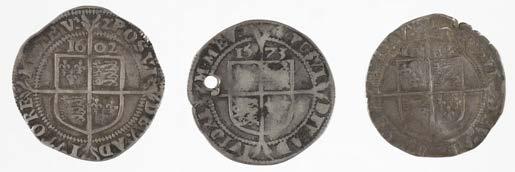 518* Elizabeth I (1558-1603), Seventh issue, Sixpence, 1602, plus two others, one dated 1573, all worn and one drilled (3)