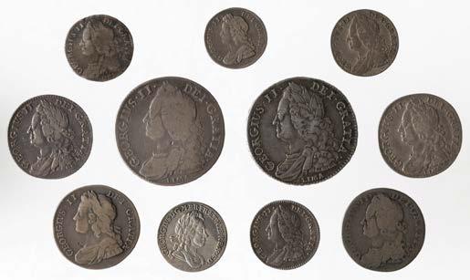 531* Silver coins. George I, Sixpence, 1717, together with George II silver coins comprising ‘Lima’ Half Crown (2), 1745,1746, Shilling (4) 1736, 1745