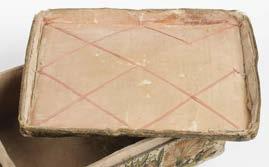 278* Embroidered Box. A 17th century needlework box, English, rectangular box, the base and pull-off lid finely worked in polychrome silk and metallised silver threads, in long and short stitch, stem stitch, and french knots, on a ground of cream silk (slightly threadbare in places at edges), over a base of cardboard (thick layered paper), with all-over floral pattern of tulips, roses, heart’s ease, carnations, paeonies, and a crown imperial, on a semé dot ground, the lid incorporating a songbird and the initials AA, faded, especially to lid, silk brocade to base of box, box and lid edged with narrow metallised braid (missing in places), matching braid forming loop handle on lid, interior of box and lid lined with oyster pink silk (worn), the lid with lattice of matching narrow grosgrain ribbon for the storage of flat items (2 6 cm lengths of ribbon missing), height 8 cm (3.25 ins), width 23.5 cm (9.25 ins), depth 17.5 cm (6.75 ins)