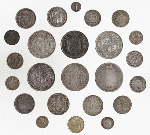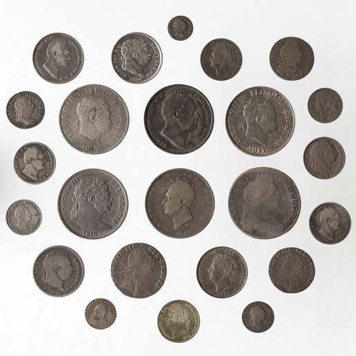 532* Silver coins. George III silver coins, comprising, Half Crown (4), 1816, 1817, 1819 and one worn, Shilling (3), 1787, 1816, 1819, Sixpence (2), 1787, 1817, Threepence (2), 1762, 1827, Twopence (2), 1772, 1809, Penny, 1784, together with George IV Half Crown (2), 1826, 1836 and other silver coins (24)