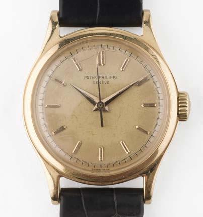 504* Patek Philippe. An 18ct gold gent’s Patek Philippe Calatrava 2508 wristwatch, circa 1950-60, the 29 mm gold dial with gold hands and batons, signed ‘Patek Philippe Genève Swiss Made’, 18ct gold case stamped ‘18’, case size 35 mm, on a blue crocodile strap with 18ct gold clasp, gross weight 50g