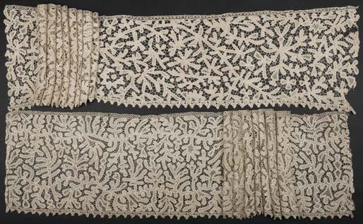 This striking large needlework is believed to have been made in a French convent. The pieces could be finished off at each end, for use as two large mirror image panels, or rejoined to again form one larger panel. (2)