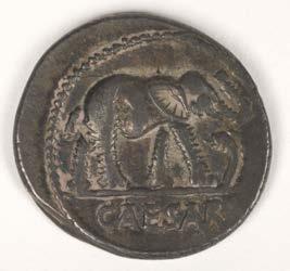The depiction of an elephant trampling a serpent is thought to refer to Caesar’s victories in Gaul. (1)