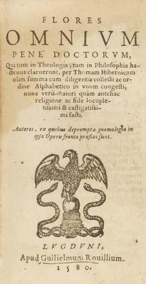 451 Roger (Thomas). S. Augustines Manuel Conteining Special and piked meditations, and godlie praiers:..., London: printed by Henrie Denham, 1581, 19th century inscriptions to the front endpapers, ex-libris bookplate to the front pastedown, leaves closely cropped to the head of the text-block, detached binding, rear board entirely detached, 19th century embossed full calf, boards & spine rubbed, small 8vo, together with: Moore (Thomas), The Commonwealth of Utopia:..., London: printed by B. Alsop & T. Fawcett, 1639, later endpapers, small loss to the foot of the title page through to pp.27, some light toning & wear, contemporary full calf, boards & spine slightly rubbed, small 8vo, plus Fletcher (John), Wit Without Money, a Comedy, 4th edition, London, 1711, engraved frontispiece, some light spotting & marginal toning, modern blue cloth, boards & spine slightly marked, slim 8vo, and other 16th to 19th century miscellaneous literature, including Sacre Historiae Acta a Raphaele Urbin in Vaticanis Xystis... Rome, 1649, 49 etched plates, 19th century gilt decorated half calf, rubbed, oblong folio, mostly leather bindings, overall condition is generally fair/good, 8vo/folio