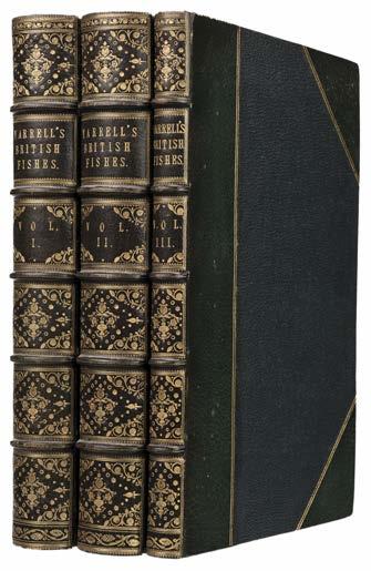 483 Macgillivray (William). A history of British Birds, Indigenous and Migratory including their organization, habits and relations; remarks on classification and nomenclature…, 5 volumes, 1st edition, London: Scott, Webster, and Geary, 1837, previous owner ink inscription to front endpaper of volume 1, numerous monochrome illustrations, some light spotting to front free endpaper, original cloth re-backed with original spine relayed, covers and spine lightly rubbed and marked, 8vo, together with; Blackburn (Hugh), Birds drawn from Nature, 1st edition, Edinburgh: Edmonston & Douglas, 1862, illustrated title page plus 22 lithographic plates, title page spotted and lightly toned, some occasional spotting throughout, original pictorial boards, covers rubbed to head and foot with occasional marks, worn extremities, folio, plus Maxwell (Herbert), British fresh-water fishes, 1st edition, London: Hutchinson & co., 1904, previous owner name to front endpaper, 12 colour plates, occasional light spotting, publishers original gilt decorated cloth, top edge gilt, shine lightly rubbed to head and foot, rear cover marked, large 8vo and other 19th and early 20th century natural history reference and related including, Notes on British birds of Herefordshire by H. C. Bull, A history of British birds by William Yarrell, and lloyds natural history series, mostly original cloth, 8vo/folio, G/VG (3 shelves)
