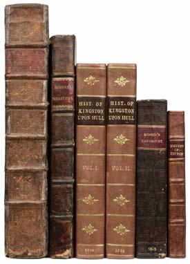 440 Antiquarian. A large collection of 18th & 19th Century literature & reference, including The Suckling Papers on the Ancient Architecture and Antiquities of England, circa 1895, 34 colour plates, W. A. Foyle bookplate to the front pastedown, later gilt decorated full red morroco, large 8vo, The Modern Voyager and Traveller, through Europe, Asia, Africa, & America, volume 2, Asia, by William Adams, London: printed for Fisher, Son & Co, 1832, hand- coloured plates, contemporary gilt decorated half calf, 8vo, and theology, history, etc... reference, some foreign language & odd volumes, mostly leather bindings, overall condition is generally fair to good, 8vo/folio (6 shelves)