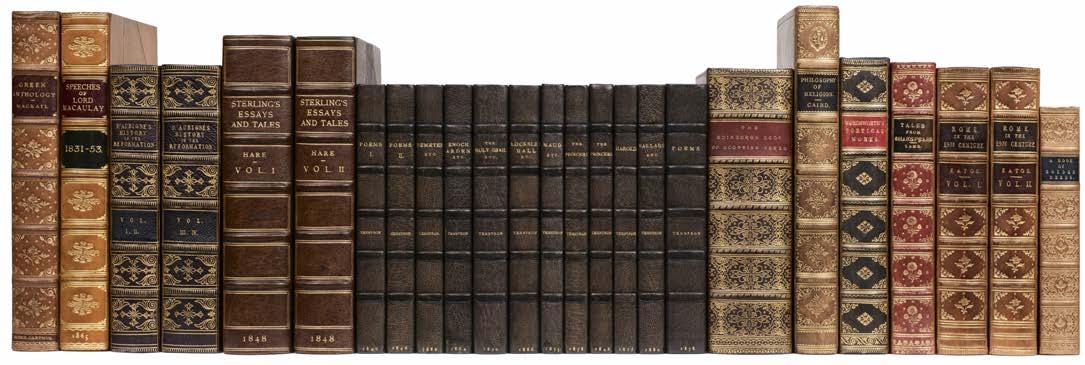 463 Hunt (Holman). Pre-Raphaelitism and the Pre-Raphaelite Brotherhood, 2 volumes, London: Macmillan and Co., 1905, monochrome plates with tissue guards, some light marginal toning throughout, contemporary uniform & ornately gilt decorated threequarter morocco, spine very lightly rubbed, 8vo, together with: Thornton (R. J.), Elements of Botany, 2 volumes, circa 1812, numerous engraved plates, lacking endpapers and title pages, some minor toning throughout, later endpapers, gutters cracked, later uniform gilt decorated green half morocco, spines faded & worn with some loss, 8vo, plus Bristow (Whiston), Poems, London: printed for the author, 1811, inscription to the front endpaper dated ‘1830’, modern endpapers, some minor toning, all edges gilt, rebound retaining contemporary gilt decorated & embossed full calf, some loss to the original spine, 8vo, and other 18th to early 20th Century literature, mostly contemporary leather bindings, some foreign language, overall condition is generally good to very good, 8vo/4to