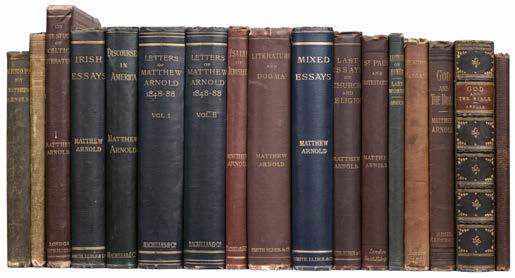 456 Petty (William). Several Essays in Political Arithmetick, 4th edition, London: printed for D. Browne, 1755, disbound lacking endpapers & boards, toned throughout, original calf spine rubbed with loss, 8vo, together with: Rundell (Mary Elizabeth, ‘A Lady’), A New System of Domestic Cookery; formed upon principles of economy:..., new edition, London: John Murray, 1819, engraved frontispiece & plates, partially disbound, toning throughout, original full calf, boards & spine rubbed with some loss, 8vo, plus Gosse (Edmund W.), English Odes, London: C. Kegan Paul & Co., 1881, monochrome frontispiece, all edges gilt, later & ornately gilt decorated full red morocco, 8vo, and other 18th to early 20th Century literature & reference, mostly leather bindings, some original cloth, overall condition is generally good to very good, 8vo/4to (6 shelves)