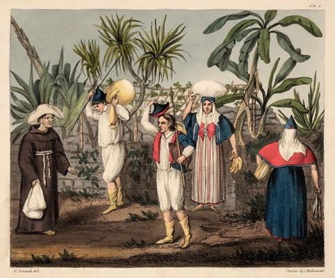 3 Bowdich (T. Edward). Excursions in Madeira and Porto Santo, during the autumn of 1823, while on his third voyage to Africa; 1st edition, London: George B. Whittaker, 1825, 22 lithograph plates (including frontispiece, 4 hand-coloured and 3 folding), further tables to text, some scattered spotting, text block separated from backstrip, front free endpaper loose, edges untrimmed, original brown paper-covered boards, paper title label to spine (some loss), tape repairs to head and foot of spine, some wear, 4to Abbey 190; Gay 2983; Hilmy II p. 382.