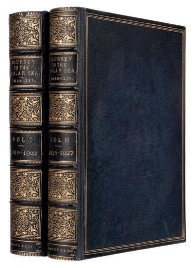 Narrative of a Second Expedition to the Shores of The Polar Sea, in the years 1825, 1826, and 1827, including an account of the progress of the detachment to the eastward, by John Richardson, 1st edition, London: John Murray, 1828, half-title discarded, 31 engraved plates, 6 folding maps loose at rear, occasional spotting, some gatherings damp-stained (affecting text and plates), top edge gilt, lower edge recently trimmed, later crushed blue morocco gilt, rebacked with original spine relaid (endpapers renewed), lightly rubbed, 4to Abbey, Travel 635; Hill 635-636; Nissen ZBI 1419; Sabin 25624. The second edition of the first volume is slightly longer with an expanded introduction touching upon the subject of the ‘moral condition of the Indians’. (2) £1,500 - £2,000