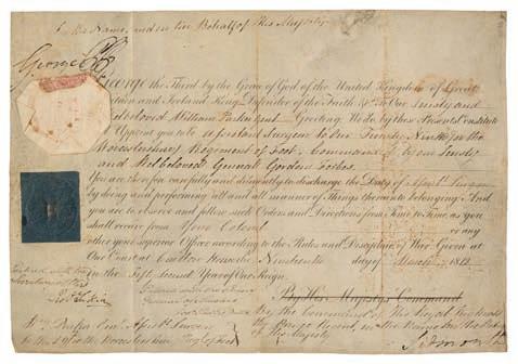 11 Franklin (John). Narrative of a Journey to the Shores of The Polar Sea, in the years 1819, 20, 21, and 22, 2nd edition, London: John Murray, 1823 [1828], half-title discarded, 31 engraved plates (12 hand-coloured, uncalled for additional plate of coral at end), four folding maps loose at rear, bookplate of Clinton E Geiser to front pastedown, occasional light spotting and offsetting, a few gatherings faintly damp-stained, top edge gilt, lower edge recently trimmed, later crushed blue morocco gilt, rebacked with original spine relaid (endpapers renewed), lightly rubbed, 4to, with tipped-in ALS from Franklin to John Edge on front blank, together with: