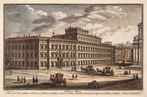 1 Blaeu (Johannes). [Mortier, Pierre]. Nouveau Theatre D’ Italie ou Description Exacte de ses villes, palais, eglises, principaux edifices &c... contenant Rome ancienne et moderne, volume 4 only (of 4), 2nd Alberts edition, The Hague: Rutgert Christophle Alberts, 1724, engraved vignette title printed in red and black, 87 engraved plates (predominantly folding or double-page), armorial bookplate of Bibliothèque de Puellemontier to front pastedown, occasional light toning (but predominantly very clean), contemporary calf, elaborate foliate gilt devices to spine compartments, morocco labels, worn (head of upper cover showing), staining to head of covers, folio (52.5 x 30.5 cm)