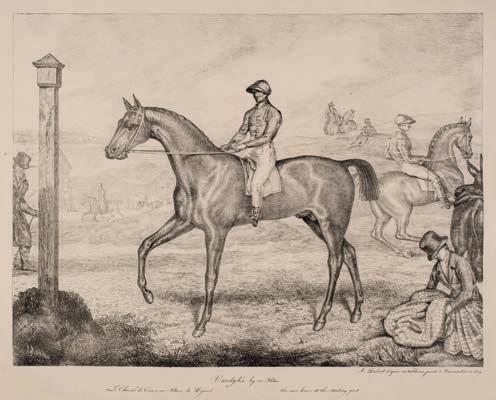 Portefeuille du Comte de Forbin, Directeur Général des Musées de France, contenant ses tableaux, dessins et esquisses les plus remarquables, 1st edition, Paris: Challamel, 1843, 44 lithograph plates (some tinted, with tissue-guards), some scattered spotting, many leaves damp-stained to lower margin (occasionally touching image), all edges gilt, contemporary red morocco-backed cloth, spine lettered and decorated in gilt, some wear (base of spine with small loss), 4to
