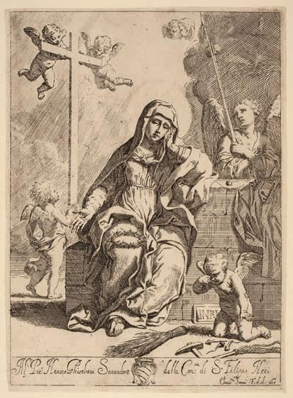 16* Sirani (Elisabetta, 1638-1635). Mater Dolorosa: Our Lady of Sorrows with Symbols of the Passion, 1657, etching, a fine, bright and vibrant impression of the only state, on laid paper with a Double Encircled Fleur de Lys watermark (similar to Briquet 7121, dated 1587), with a narrow margin at the bottom, otherwise with a thread margin or trimmed on or just within the platemark, slightly unevenly at lower left, in good condition, sheet 28.6 x 20.8 cm (11 1/4 x 8 1/4 ins), in conservation mount, unframed Bartsch 7.