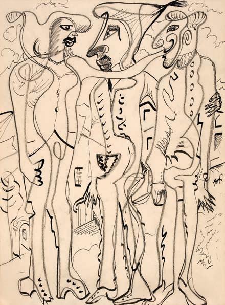 409AR* Abrahams (Ivor, 1935-2015). Trees, circa 1976, glazed pottery in cream and black, monogrammed to lower right, artist’s name and ‘3/30’ in black pen to bottom, ‘76’ in pen to verso, length 33 cm (13 ins)