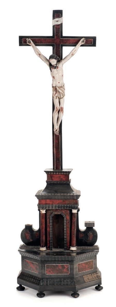 397* Ditchling Workshop. A Devotional Niche, circa 1920, carved polychromed stone (possibly Hoptonwood), in two sections, height 37.5 cm (14 3/4 ins), width 15 cm (6 ins), depth 25 cm (9 3/4 ins), niche depth 11 cm