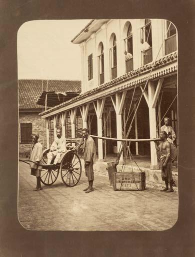 25* China. Chinese rickshaw and pack carriers, by William Saunders, c. 1870, albumen print, 27 x 20.5 cm, card mount with contemporary inscription in German to verso (1)