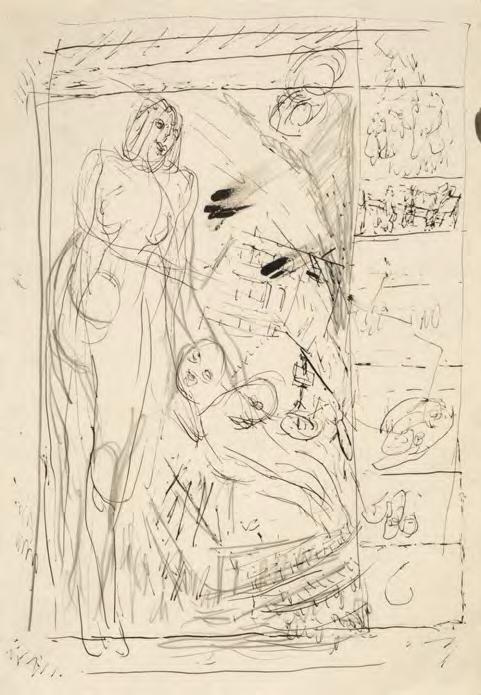 Léon Bakst (1866-1924). Costume design for the ballet La Belle au Bois Dormant: Une Dame de Cour, 1921, pencil and watercolour, heightened with gold and silver, on pale cream laid paper, with extensive annotations in black ink by the artist, lower margin trimmed irregularly near the design shape, 285 x 240 mm (11 1/4 x 9 1/2 ins) mount aperture, modern silver aluminium box frame, glazed, with annotations in black ink by Richard Edmonds to verso