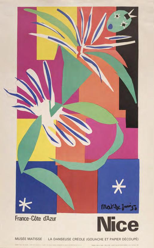 This poster was printed by Mourlot and produced for the Musée Matisse, Nice, as publicity material by the Commissariat Général au Tourisme. Taken from the original gouache and paper cut-out, the subject is the dancer Katherine Dunham, whom Matisse had seen perform. (1)