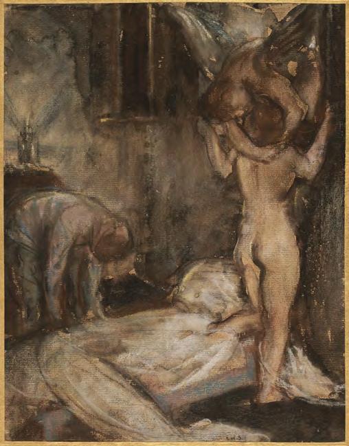 Provenance: David Gould (1922 -2004), art dealer, connoisseur, and founder of the Taranman Gallery with Christopher Hewett. French was born in Dublin and trained as an artist at the Royal Academy Schools, London, and at School at Bushey, Hertfordshire. He regularly exhibited between 1902 and 1922, at venues including the Royal Academy Annual Exhibition in 1902 and the Baillie Gallery in 1903. His etchings and lithographs are in the British Museum Print Room. He illustrated his first volume of verse Between Sun and Moon, 1922, published in a limited run of 350 copies by Favil Press. He dedicated this book to his fellow Irishman, the poet W.B.Yeats. According to David Gould, writing in 1954, French largely abandoned painting after 1903 because he felt unable to attain the standards of the Florentine Renaissance painters and Pre-Raphaelite artists he so admired.