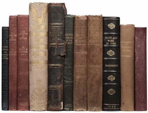 436 Grimes (Cecil John). Towards an Indian Church, 1st edition, London: Society for Promoting Christian Knowledge, 1946, the author’s own copy with annotations on the front free endpaper (with silver gelatin photograph mounted beneath), author’s bookplate to front pastedown, folding plates, top edge gilt, 20thcentury blue half morocco gilt, rubbed, 8vo, together with: Forbes (Duncan). A Grammar of the Arabic Language, London: W. H. Allen, 1874, half-title, a few preliminary leaves with small wormholes, near-contemporary red straight-grain morocco gilt, rubbed with a few marks, 8vo, plus Elliott (Charles, translator). The Life of Hafiz Ool-Moolk, Hafiz Rehmut Khan, written by his son, the Nuwab Moost’Ujab Khan Buhadoor, and entitled Goolistan-I-Rehmut, London: Oriental Translation Fund, 1831, bookstamp of the Earl of Ellenborough to head of front pastedown, original green cloth, paper title label to spine (worn), rubbed with a few marks, 8vo, with 6 shelves of mostly early 20th-century clothbound books, many on India (6 shelves)