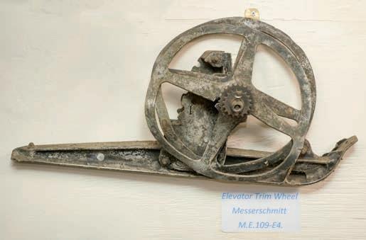 409* Messerschmitt Me109 E-4. Relics recovered from Messerschmitt Me109 E-4 flown by Lieutenant Frederick Klotz who was shot down and killed by Bunny Currant on 15 September 1940 (Battle of Britain Day), including a tail wheel with a Continental rubber tyre numbered 290 x 110, tail wheel hydraulic strut, handle from a Walther very pistol, perspex from the cockpit, data plate and other items