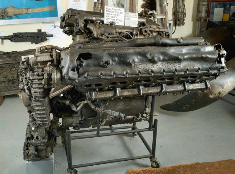 The engine was the first aircraft recovery by Malcolm Pettit and has been the focal point of the Tonbridge Battle of Britain Museum since it was excavated by Malcolm in 1972. It was located in the Half Moon public house garden along with two Supermarine rudder pedals, the engine starter motor and various other aircraft parts.
