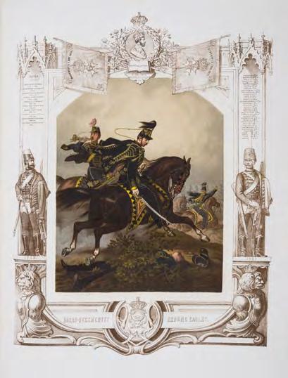 Alexander II (Emperor of Russia) GIOSTRA CORSA IN TORINO ADDI XXI DI FEBBRAIO, M DCCC XXXIX, NEL PASSAGGIO DI SUA ALTEZZA IMPERIALE E REALE ALESSANDRO GRAN-DUCA PRINCIPE IMPERIALE EREDITARIO DI RUSSA , title printed in gold an silver, within decorative border incorporating the arms of Savoy, 7 hand-coloured lithographs, heightened with gum Arabic, signed f. Gonin 1839, occasional spotting, mostly marginal, occasional faint finger-soiling, bookplates, contemporary printed boards, bumping to corners, light soiling, weak joints, [Bobins II, 574], folio, Turin, Tipografia Chirio e Mina, 1839.