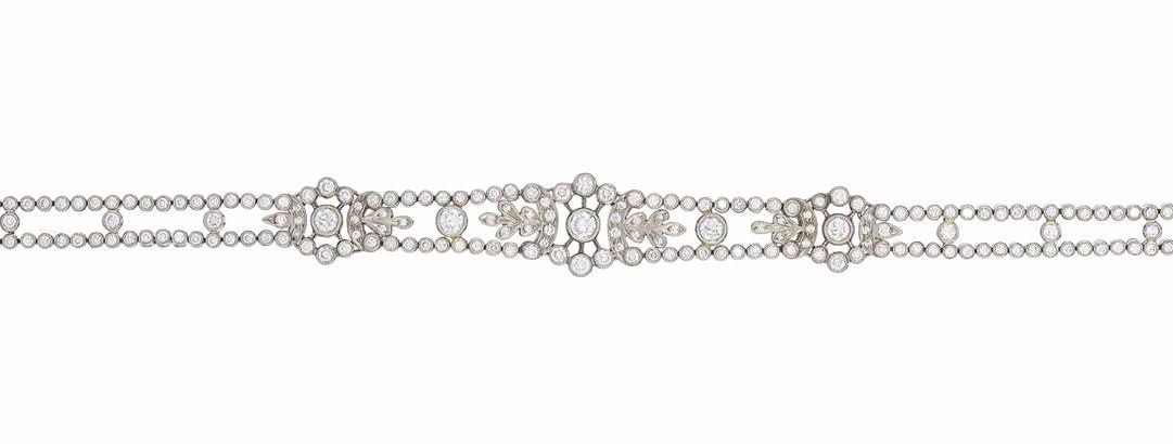 27 A Belle Epoque platinum vari-cut diamond bracelet, estimated total old-cut diamond weight 0.30ct, stamped 800, length 16.8cm, 8.8g