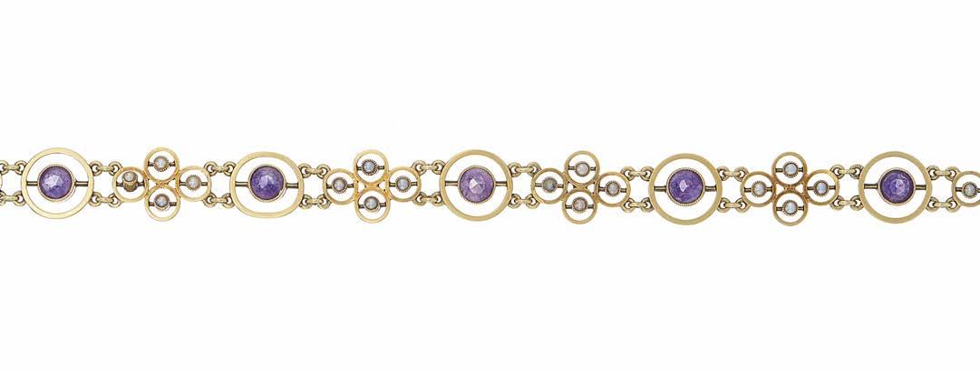 4. A late Victorian gold graduated amethyst and seed pearl riviere necklace, length 39.3cm, 23.4g £400 - £600