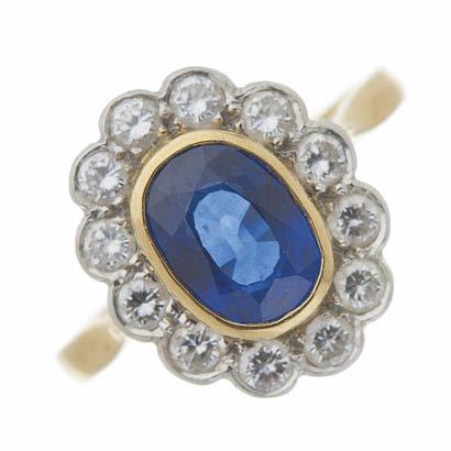33 An 18ct gold sapphire and brilliant-cut diamond cluster ring, sapphire estimated weight 2.25ct, estimated total diamond weight 0.70ct, H-I colour, VS clarity, hallmarks for London 1998, ring size Q, 6.2g