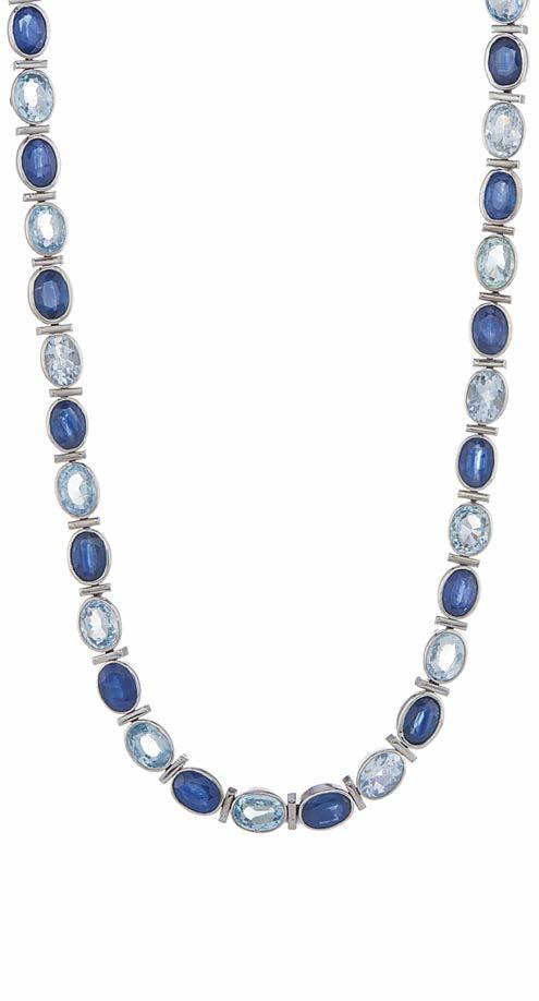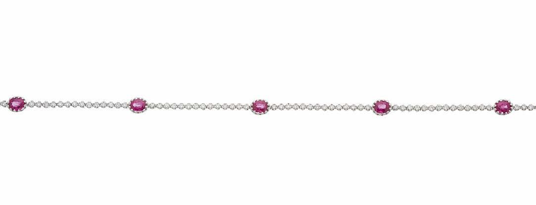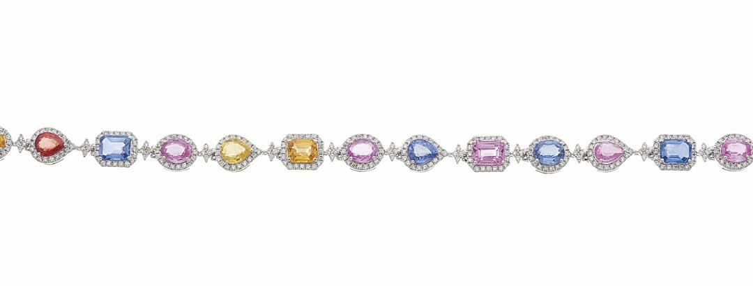34 An 18ct gold vari-hue sapphire and brilliant-cut diamond line bracelet, estimated total sapphire weight 8ct, estimated total diamond weight 1.25ct, predominantly I-J colour, SI clarity, stamped 750, length 18.4cm, 11.9g