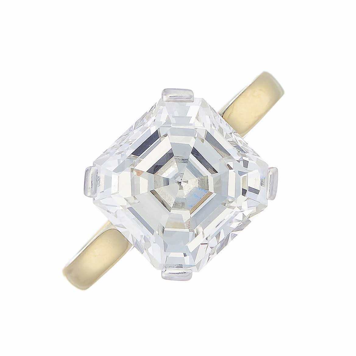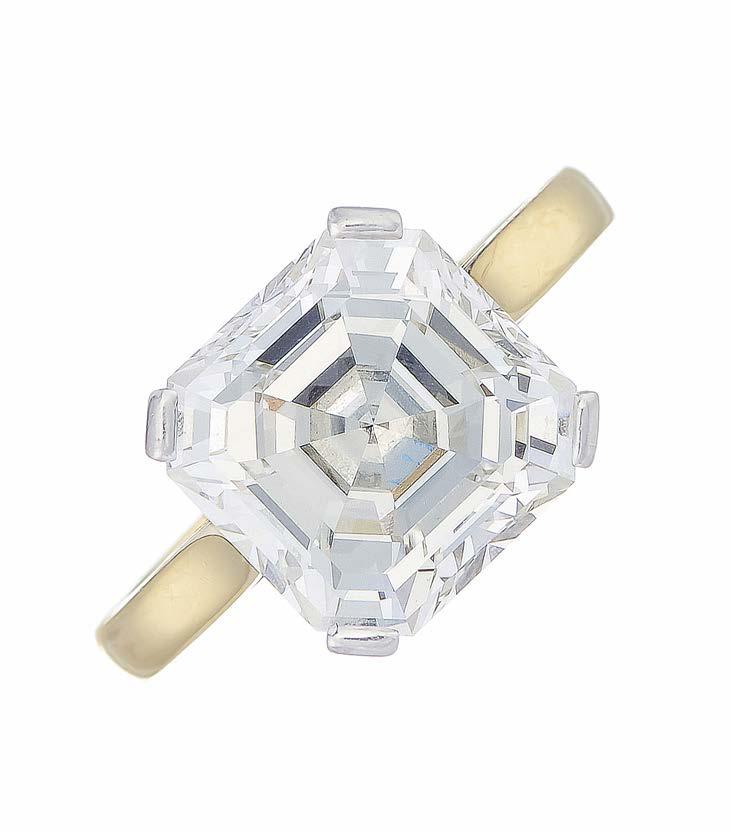 46 An impressive 18ct gold square-shape diamond single-stone ring, diamond estimated weight 5ct, I-J colour, SI clarity, hallmarks for London 2005, ring size L, 5.2g £20,000 - £30,000
