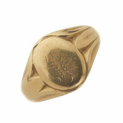 54. An Edwardian 18ct gold engraved buckle ring, hallmarks for London 1902, ring size O1/2, 5.2g £100 - £150