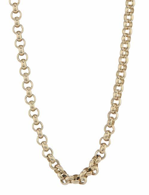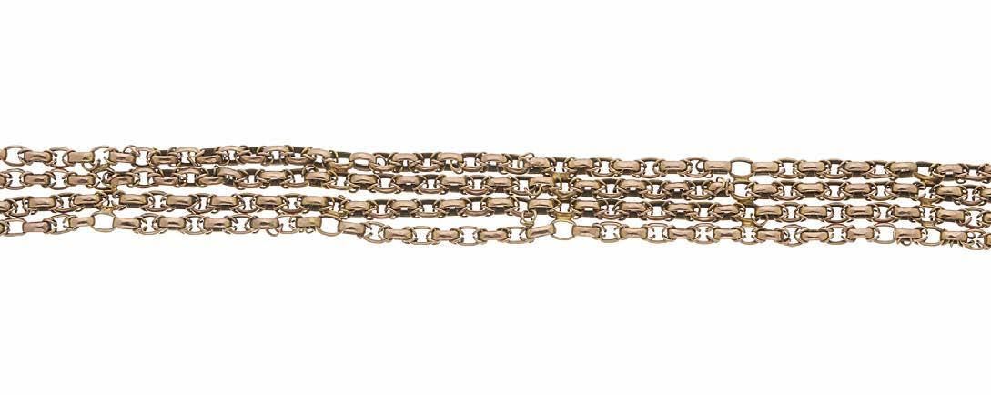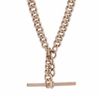 3. A late Victorian 9ct gold Albert chain, suspending a 1704 George III Guinea coin, chain with partial hallmarks for Birmingham 1896, length of pendant 2.9cm, length of chain 36.5cm, total weight 56.1g £800 - £1,200