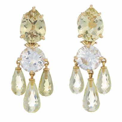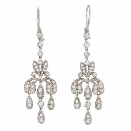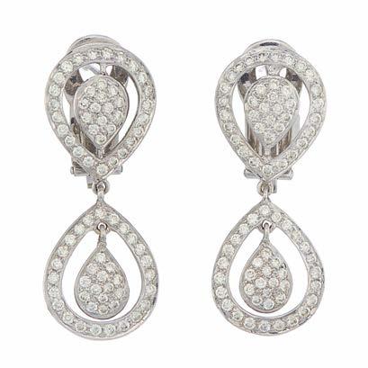 45 A pair of 18ct bi-colour gold pear-shape and brilliant-cut diamond foliate drop earrings, estimated total diamond weight 3.50ct, H-I colour, VS clarity, mount engraved 18K 750, length 4.5cm, 9.2g £3,000 - £4,000