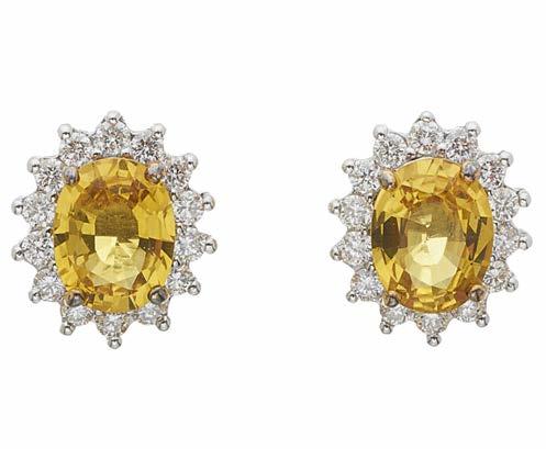 30 A pair of 18ct gold yellow sapphire and brilliant-cut diamond cluster stud earrings, estimated total sapphire weight 3.80ct, estimated total diamond weight 1.10ct, H-I colour, VS clarity, length 1.2cm, 4.3g £1,200 - £1,800