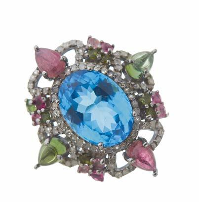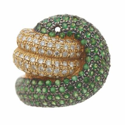 44 An 18ct gold orange sapphire and diamond cocktail ring, estimated total diamond weight 0.85ct, ring size Q, 23.6g £1,000 - £1,500