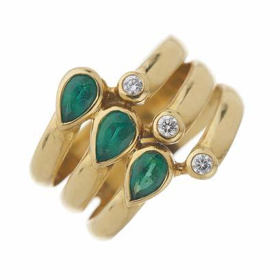 31 An 18ct gold emerald and brilliant-cut diamond dress ring, band stamped 18ct, ring size K1/2, 5.8g £300 - £400
