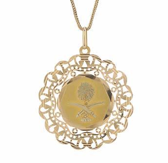 26 An early 20th century Masonic medallion, within a 9ct gold glazed mount, hallmarks for Birmingham 1920, diameter of mount 4cm, length of medallion 9.5cm, total weight 33.6g