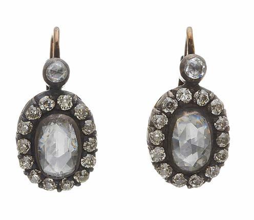 22 A pair of 19th century gold and silver, old and rose-cut diamond cluster earrings, principal diamonds measure approximately 8 by 5.5mm, length 2.1cm, 6.7g £1,000 - £1,500