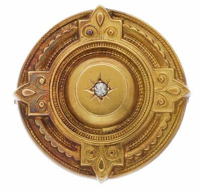 52 An early 20th century 15ct gold old-cut diamond brooch, hallmarks for Birmingham 1914, diameter 3.2cm, 6.6g