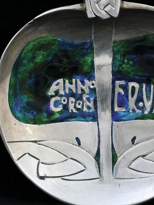 35 Gladys and Charles Mumford, an Arts and Crafts silver brooch, oval wreath form decorated with wire ruyi heart motifs and applied leaves, 4cm long £50 - £100