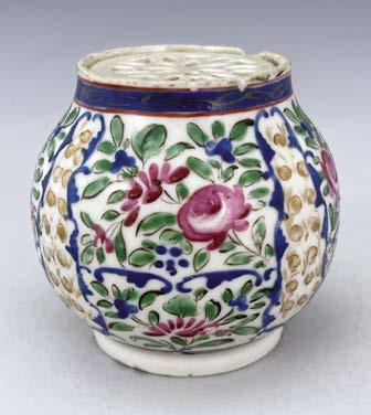 14 An 18th century white metal pomander or herb infuser, spherical ball form, pierced with holes, hinged to the midsection with hook latch and suspension loop, 6cm diameter, 2.11ozt £60 - £100