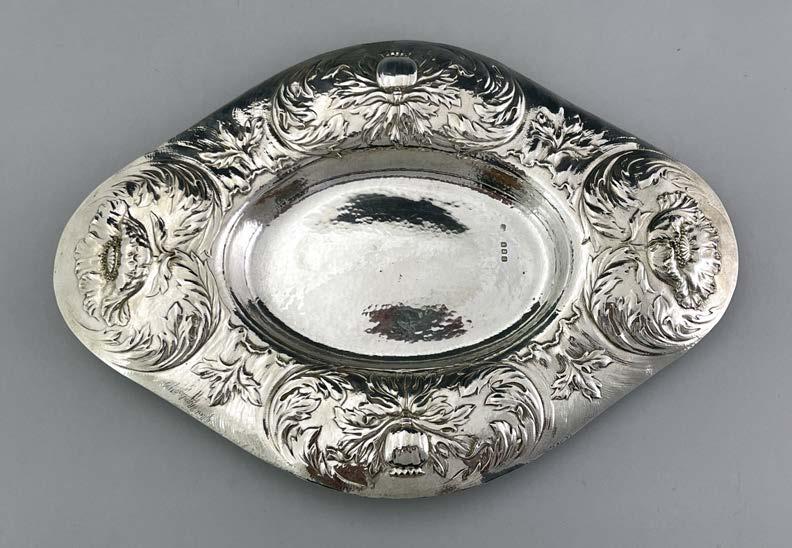 8 An Indian white metal reticulated pedestal bowl, embossed with forest animals below pierced border of elephants, 9cm diameter, 2.23ozt £40 - £60