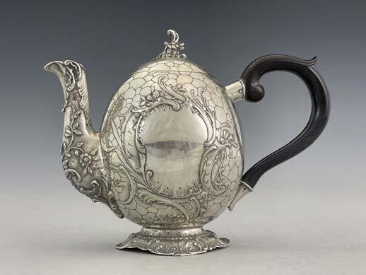 20 A Dutch silver tea caddy, Pieter Pieters, Amsterdam circa 1860, lobed ovoid form on cast foliate bracket foot, the finial in the form of a fruit, 12cm high, 7.95cm high £350 - £450